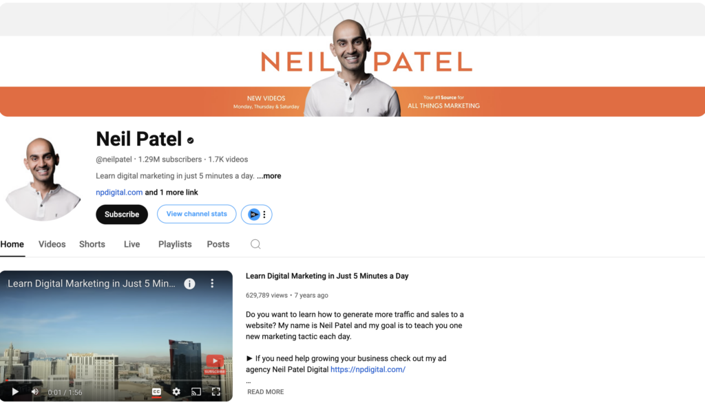 Neil Patel is a renowned digital marketing expert, entrepreneur, and author who helps businesses grow their online presence and increase their revenue through effective marketing strategies.