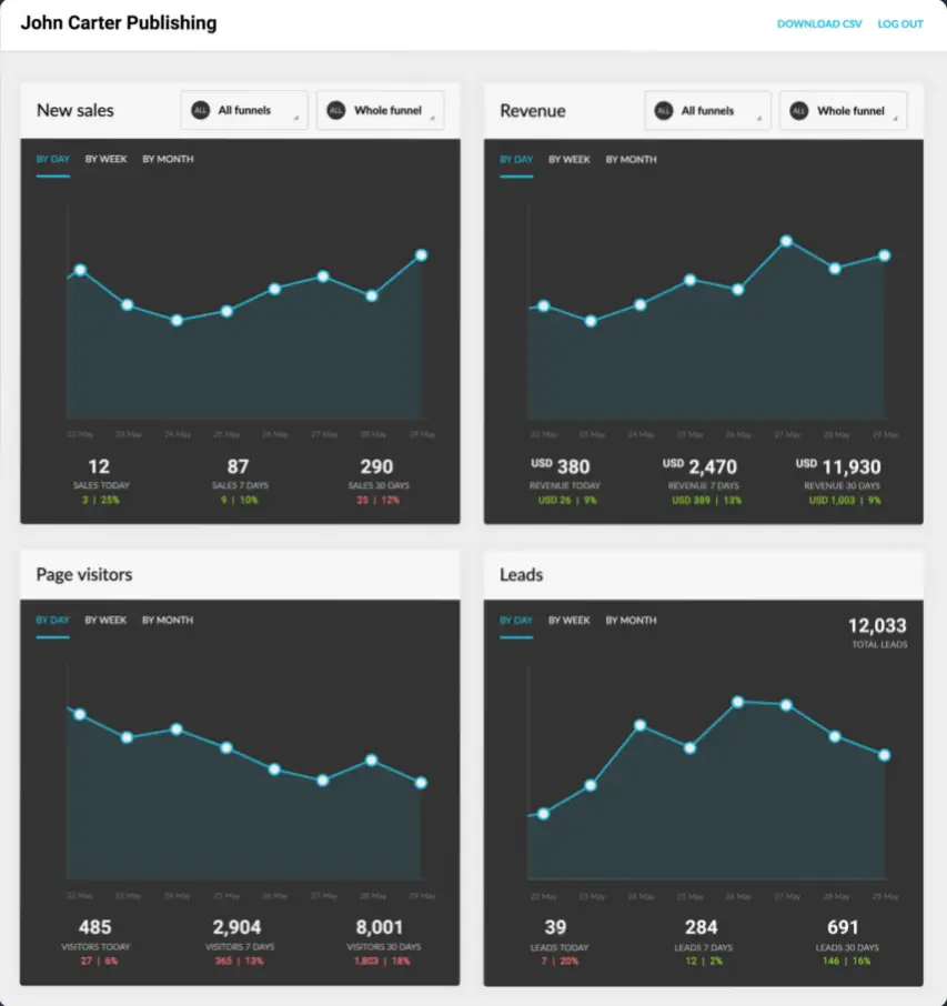 Your clients will ask you about their account performance, no doubt about it. Kartra generates personalized reports for each client so they can review their account key metrics!